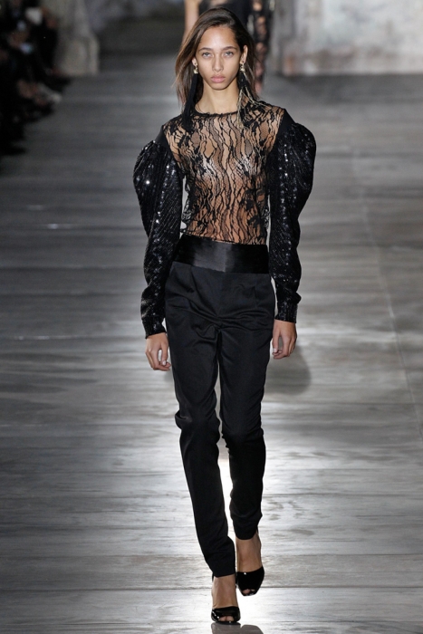 Но рекорд по количеству голых моделей поставило шоу Saint Laurent с новым креативным директором Энтонни Ваккарелло. И это не просто призыв дизайнера раздеваться, а отсылка к гениальной фотографии Хельмута Ньютона 1975-го года: две женщины — одна в смокинге Yves Saint Laurent, вторая обнаженная и на каблуках — по задумке Ива Сен-Лорана, олицетворяют противоположные стороны женственности. |