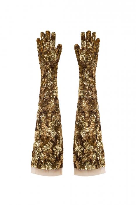 Палитра также обусловлена природой: главные цвета — болотно-зеленый, земляные оттенки почвы. А также постоянные для коллекций Ульяны Сергеенко золотой, черный и красные цвета.