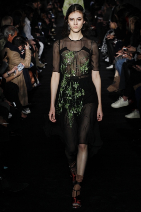 Девушкам, которые хотят попробовать прозрачные платья, но боятся общественного мнения, стоит взглянуть на модели вроде Christian Dior, Reem Acra, Lanvin и Vionnet, которые прикрывают пикантные места принтом и декором: плиссировкой, рюшами и богатой вышивкой. Сверху можно накинуть куртку в стиле гранж или оверсайз-джинсовку и при возникновении дискомфорта застегивать ее на все пуговицы.