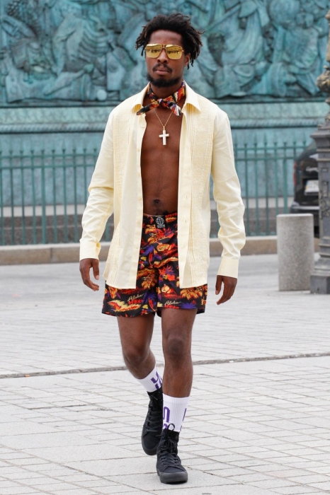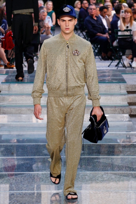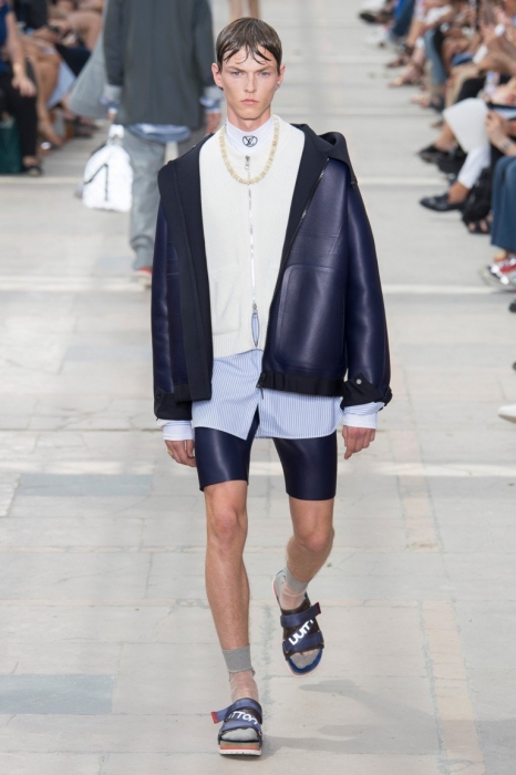 «Можно ли сочетать тапки с носками?» — пожалуй, самый популярный мужской вопрос после ежесезонной фэшн-мессы. Louis Vuitton, Versace и Fausto Puglisi дают добро, советуя при этом натягивать аксессуар повыше. Раскрашенные в леопардовый, зеленый или в полоску носки становятся центральной частью образа и помогают самовыразиться, если мужчина вынужден носить одно и то же каждый день.