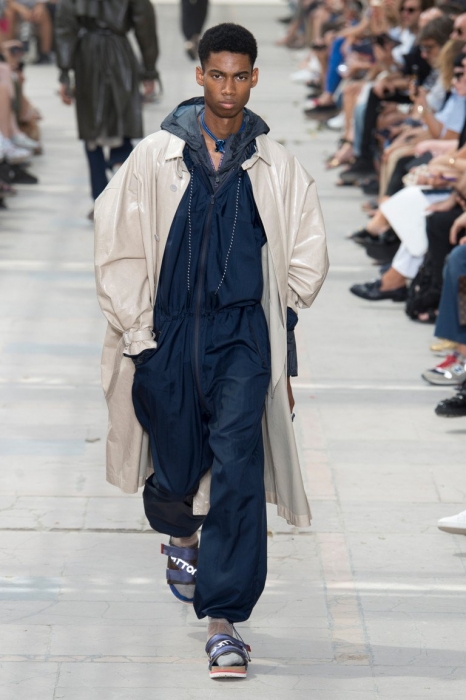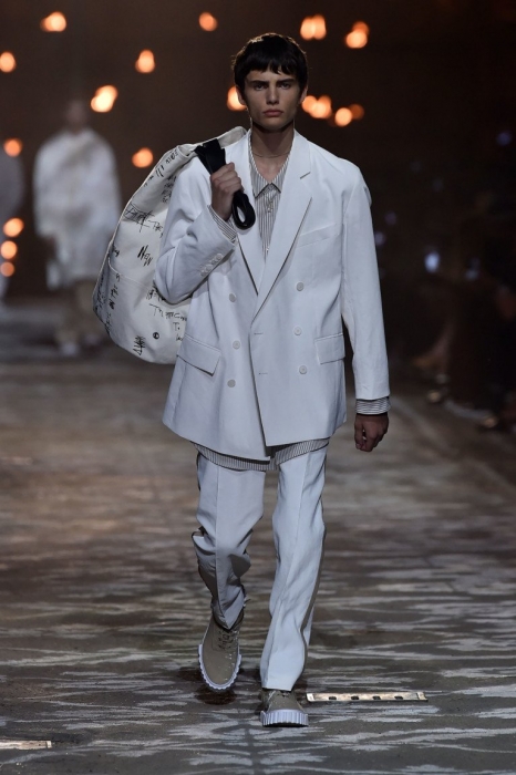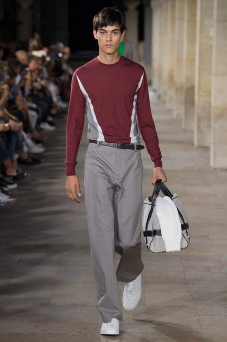 После манипуляций Balenciaga с хозяйственными сумками, они стали настолько популярны, что теперь их хотят не только «фэшионистас», но и «фэшионистеры». Запрос получен — и вот уже парни из Hermes, Off-White и Hugo вытаскивают на подиум огромные мешки из денима, полиэстера и пластика, перебрасывая их через плечо. Осталось только придумать, что туда положить.