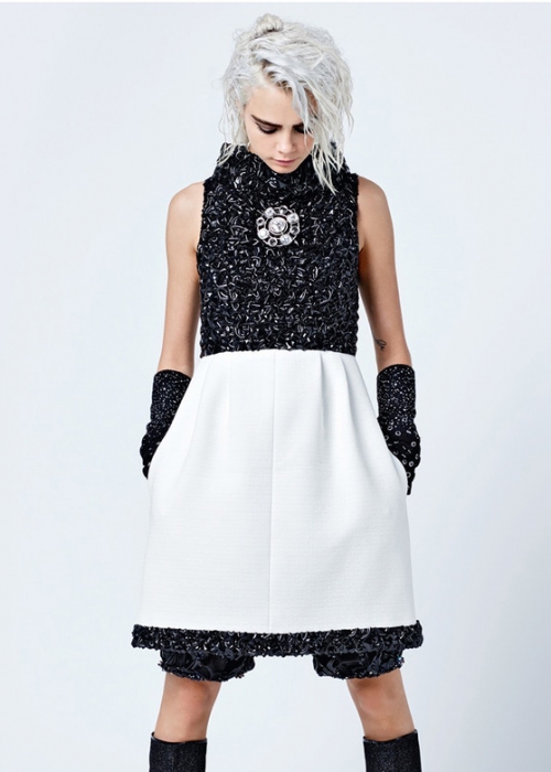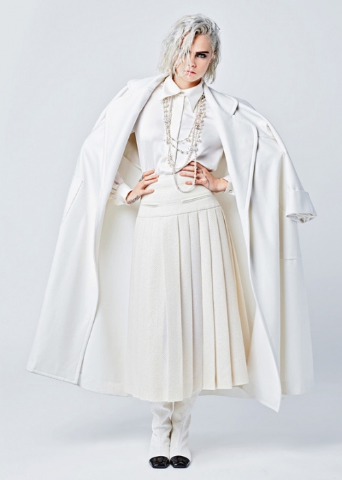 Напомним, осенне-зимняя коллекция Chanel была посвящена теме футуризма и космоса. В Гран-Пале — традиционном месте показа марки — был возведен настоящий космодром с ракетой, вокруг которой ходили модели-инопланетянки в серебристых куртках и импровизированных термо-одеялах, впоследствии не раз становившихся объектом иронии. Кары Делевинь на подиуме замечено не было, хотя до этого она становилась лицом сезонных кампейнов Chanel более пяти раз. Последним проектом стала реклама сумок Chanel's Gabrielle, в съемках которой также приняла участие коллега Кары по новому, актерскому, цеху — Кристен Стюарт.