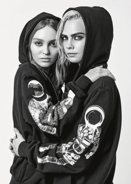 Кажется, Кару Делевинь рано списывать со счетов как модель и музу Карла Лагерфельда. Несмотря на то, что девушка с головой ушла в киноиндустрию (недавно она представила совместную работу с Люком Бессоном «Валериан и город тысячи планет») и даже начала записывать саундтреки, кампейн новой осенне-зимней коллекции Chanel без нее не обошелся. Вместе с дочерью Джонни Деппа и Ванессы Паради — Лили-Роуз Депп — она прорекламировала знаковые вещи грядущего сезона: худи с астронавтами, белоснежную плиссированную юбку, укороченный жакет с бусинами, рюкзак из металлизированной кожи и футуристичное платье с деталями как от космического корабля. Интересно, что все самые провокационные снимки — в пиджаке на голое тело или вовсе без одежды — достались Лили-Роуз, которая только начинает свою карьеру, в то время как Кара предстала в объективе в закрытых консервативных луках.