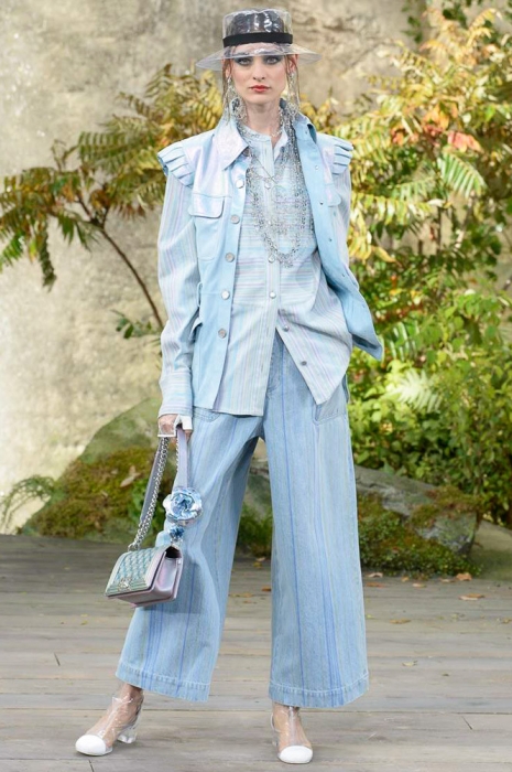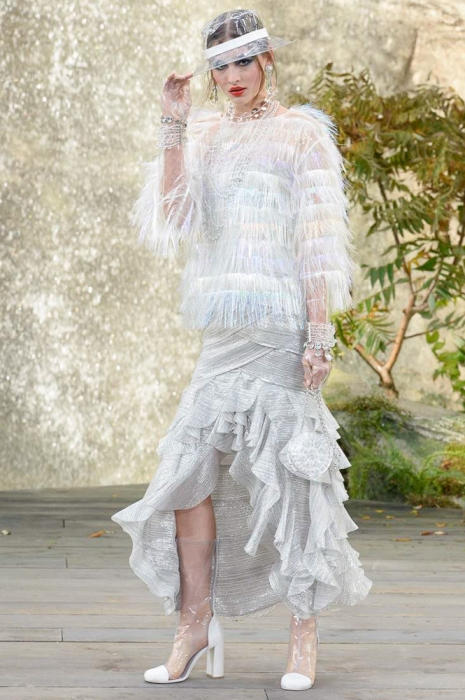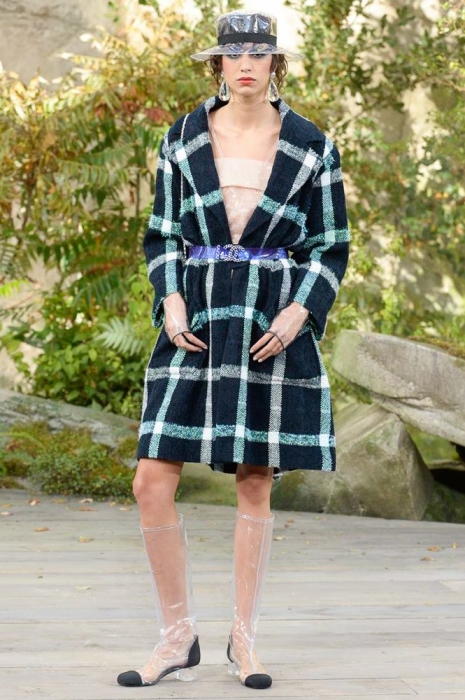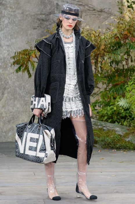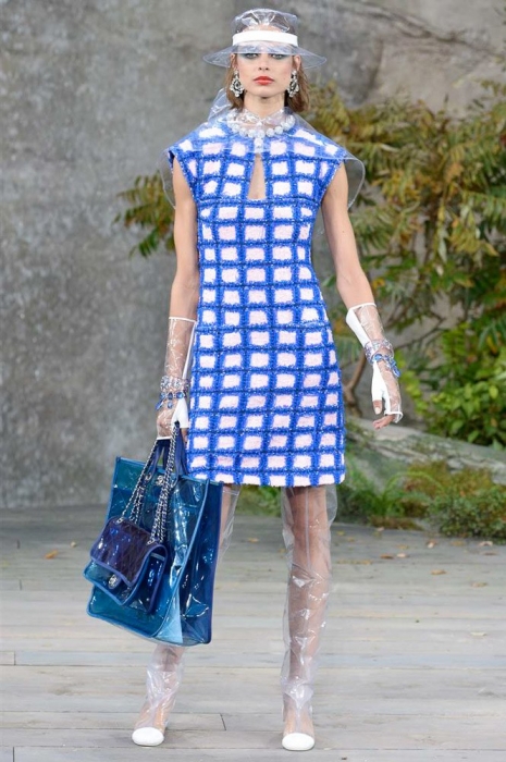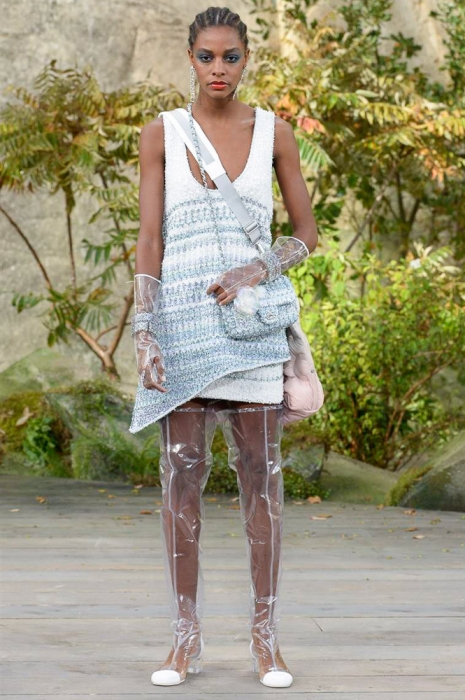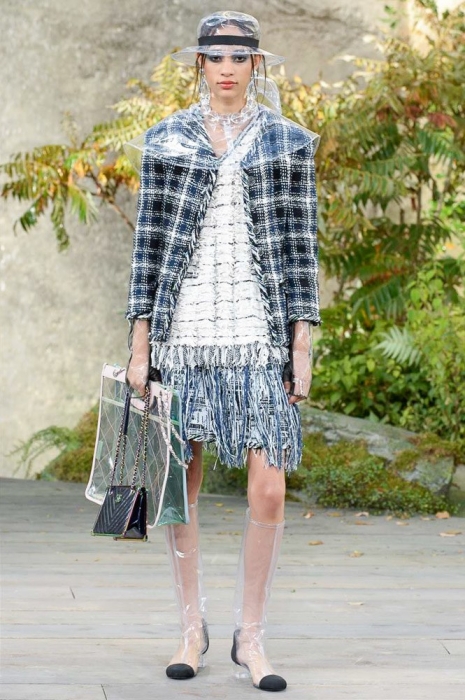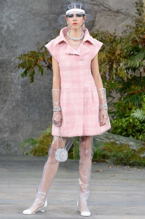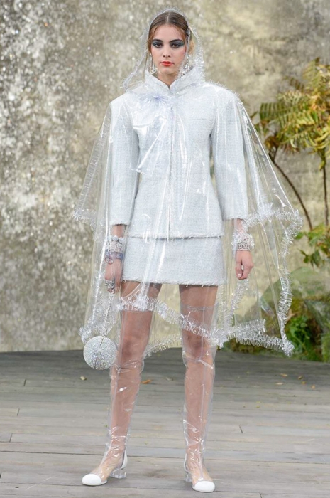 Плохая погода, похоже, беспокоит не только жителей России, но и самого Карла Лагерфельда, который сегодня показал новую коллекцию Chanel на весну. Из 88 образов больше половины были обернуты в пластик — дизайнер сделал из него шляпы, перчатки, сумки и дождевики, прячущие твидовые костюмы, белые жакеты и «праздничные» платья с перьями и рюшами. Теперь девушкам, которые выбирают одежду Chanel для красных дорожек, не нужно дожидаться конца дождя в лимузине — прозрачные водонепроницаемые накидки отлично дополняют кутюрный лук (особенно если замешать их с бриллиантовым колье и круглым дискобольным клатчем).