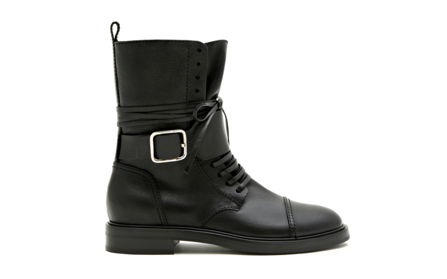 Несмотря на то что дизайнер Дороти Лоермен считается адептом минимализма, в ее бэкграунде и обучение в Королевской академии искусств в Антверпене, и работа на самых эксцентричных дизайнеров нашей с вами современности — Вальтера ван Бейрендонка и Бернарда Вильгельма. Видимо, в школе авангарда она научилась вычурным деталям, а фирменным приемом стала металлическая пряжка. Ее можно найти на слипонах An Hour And A Shower, к линейке которых в этом сезоне добавились ботинки из овечьей шкуры и ботильоны, напоминающие по форме ботинки для фигурного катания. («Невский центр»)