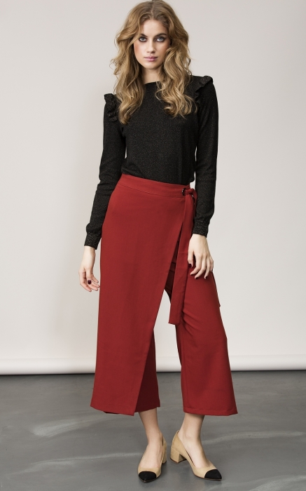 Классическое цветовое сочетание русского авангарда использовали дизайнеры испанской марки Lolitas, не иначе как вспомнив о столетии революции. Брюки-кюлоты оттенка кумача, бескомпромиссный черный верх — и вот вы сами превратились в арт-объект. Искусство в массы — разве реформаторы не этого хотели? (lolitasylolos.com)