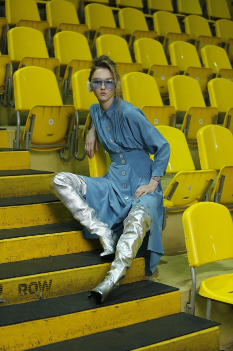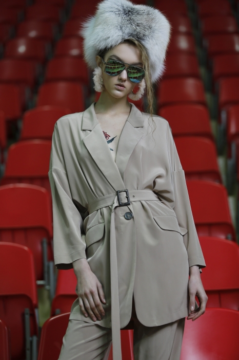 Пока МОК запрещает спортивную форму от Zasport и решает, во что одеть «нейтральных» спортсменов, дизайнер Алена Ахмадуллина предлагает свою версию экипировки. Новый лукбук pre-fall коллекции она сняла на ледовой арене, в антураже ярких кресел и тренирующихся конькобежцев. Модели вышли на спортивный подиум в блестящих оверсайз-пальто, металлизированных ботфортах, очках с «выбитым» стеклом, голубых советских платьях, сетчатых колготках с аппликациями и огромных меховых папахах — перед такой кутюрной формой будет трудно устоять даже самым скептично-настроенным членам комитета.