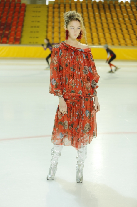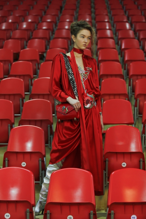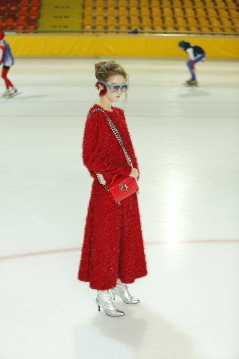 Сама команда бренда утверждает, что вдохновлялась не предстоящей Олимпиадой в Пхенчхане, а сказкой «Снежная королева» Ханса Кристиана Андерсена. Коллекция раскрывает линию, связанную с красной и белой розой, которые главные герои сюжета — Кай и Герда — посадили как символы верности друг другу. Отсюда основные цвета нарядов, нашитые на ткань цветы, кристаллический «ледовый» орнамент и сумка «на цыпочках», которую мы уже хотим забрать к себе на полку (ветку!) гардероба.