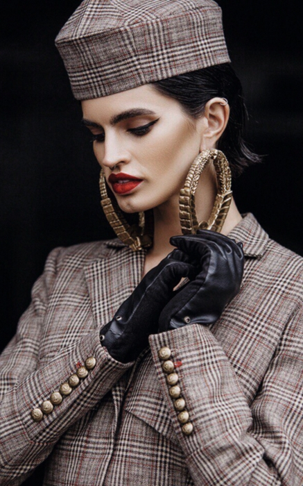 Финалист конкурса «Новые имена в дизайне — 2017» Илья Бостон показал летнюю коллекцию «Эра советов». Огромные серьги с гербом СССР, милитари-жакеты и форменные пилотки с пионерской серьезностью в лукбуке примеряет модель Саша Паника. (Dress Up Hero)