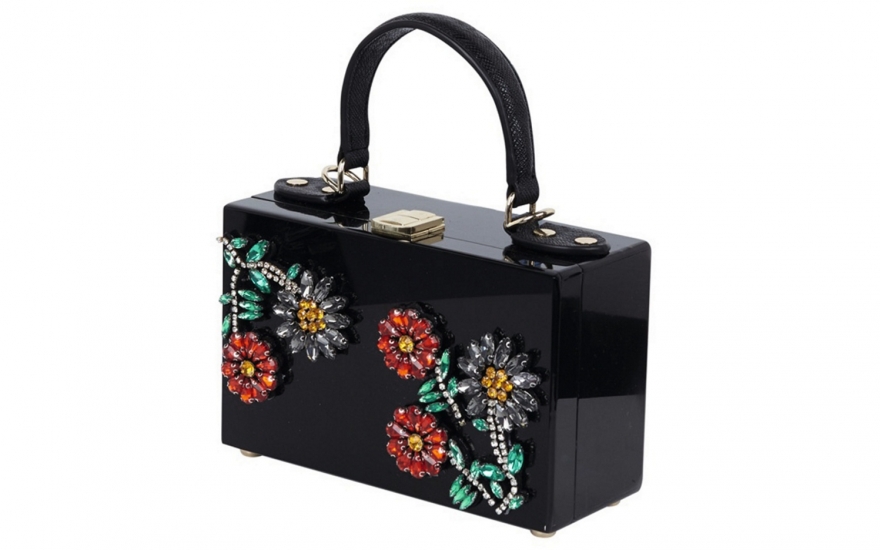 На лакированных клатчах Uterque распустились цветы-кристаллы, которым не страшны ни злые морозы, ни лед витрин голубых. (ТРЦ «Галерея»)