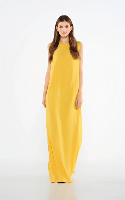 ESCADA дразнит ослепительно-желтым цветом в новой resort-коллекции и намекает: еще немного, и трудящиеся будут свободны, как фасон этого платья. (ESCADA)