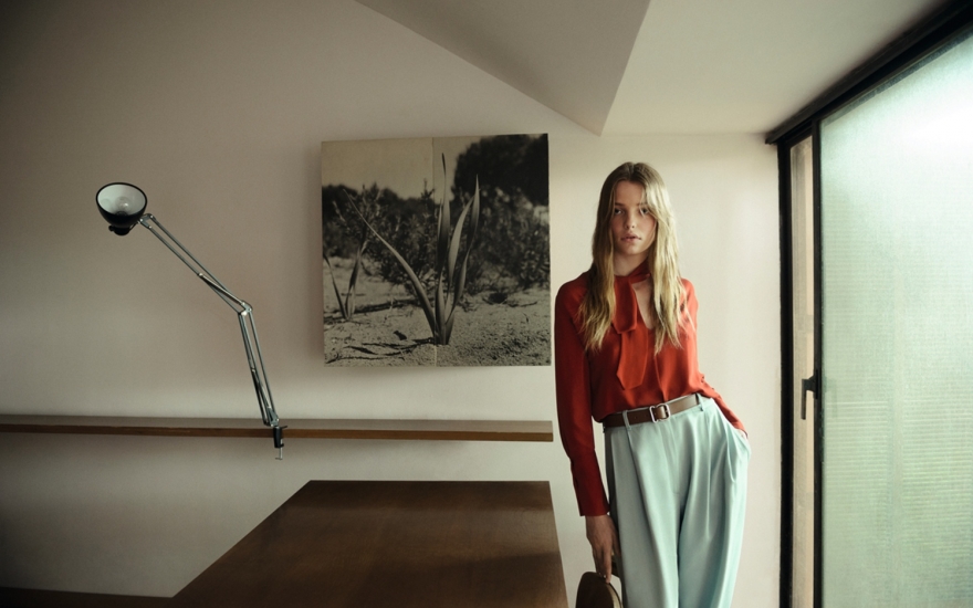 В Massimo Dutti учат, как обращаться с оттенками: нежно-голубые брюки-бананы стоит миксовать с блузой цвета сезона — гренадина. (ТРЦ «Галерея»)