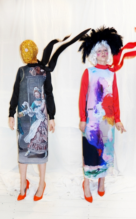 В новой коллекции Bondarev под магическим числом «7» художник Сергей Бондарев устроил полный арт плюс фэшн. Он отсканировал не только собственные картины и коллажи, но и карикатуры из английских книг XVIII–XIX веков, в точности сохранив цветопередачу живописных оригиналов. Все — строго лимитировано! Срочно берем бескомпромиссные алые платья с открытой спиной, и скромные футляры из черного или пудрового шелка. («Мармеладова»)