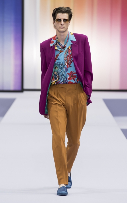 Новый весенний сезон Пол Смит сочинил, отправившись в виртуальное путешествие на Гавайи. Лейтмотивом коллекции стала рубашка с дико оптимистичным тропическим принтом, а стилевым приемом — наш любимый принцип капусты: чем больше слоев, тем лучше. Главное — придать образу максимальную небрежность, как будто вы идете с пляжа на препатийный коктейль. Носить — хоть на деловые встречи, хоть на вечеринки: в очередной раз в Paul Smith показывают мужчинам, как именно нужно сочетать цвет. Учитесь! (Paul Smith)
