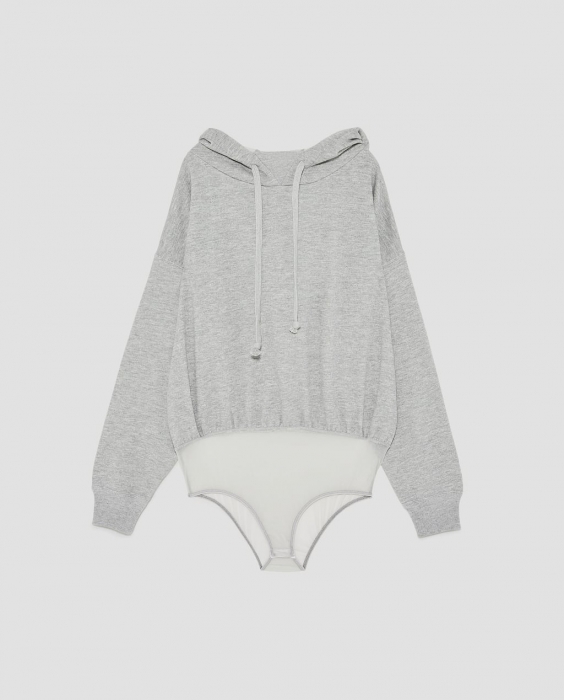 Если вы думали, что все гениальное уже было создано, то ошибались. На сайте Zara появилась вещь под кодовым названием «худи-боди» — серая толстовка, соединенная с полупрозрачными трусами. Бренд убежден, что это новое слово в практичности и фэшн-дизайне: кофта не «выпадает» из брюк, а вам не нужно тратить время, чтобы ее поправить. Только вот мнение Zara разделяют немногие: худи-боди уже выставлено на сейл в попытках продать его хотя бы со скидкой.