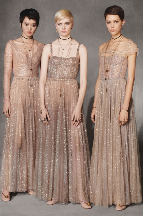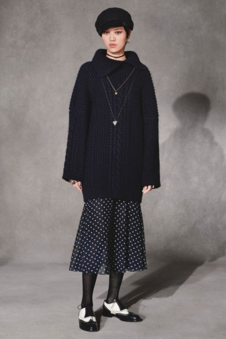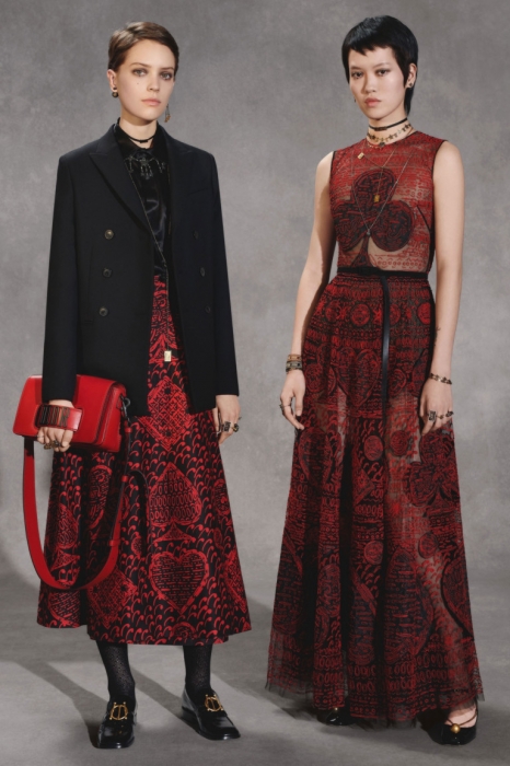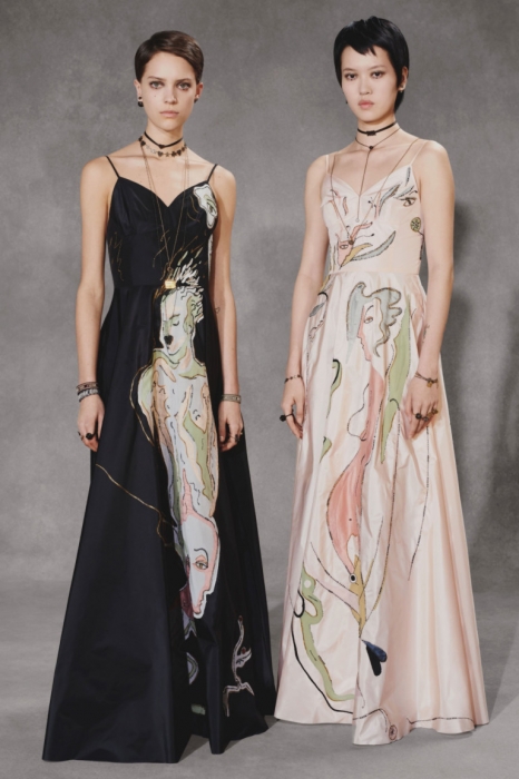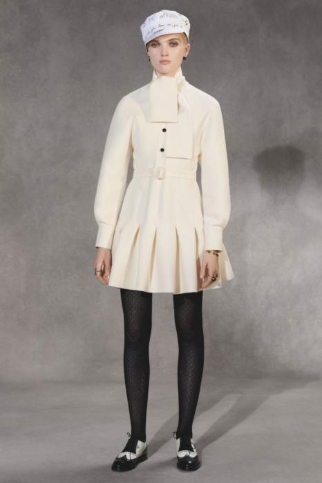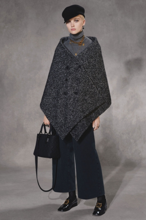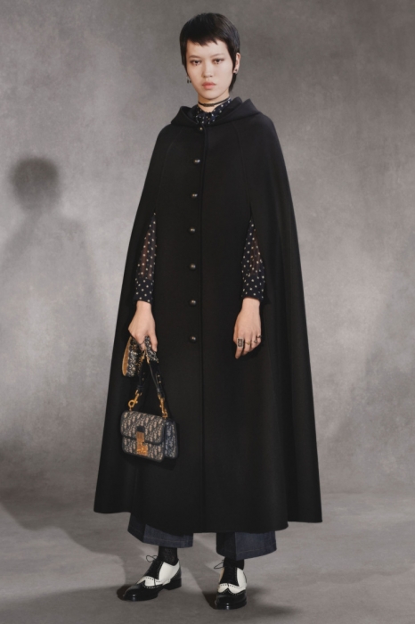 Мария Грация Кьюри следит за настроением миллениалов через свою 20-летнюю дочь Рэйчел Регини, продолжая вплетать его в наследие Диора. На этот раз дизайнер смешала тенденциозные сумки-шопперы, футуристичные очки и яркие школьные платья со сложными архитектурными формами и ключевыми для бренда силуэтами — кейпами, кюлотами, строгими костюмами и барными жакетами.