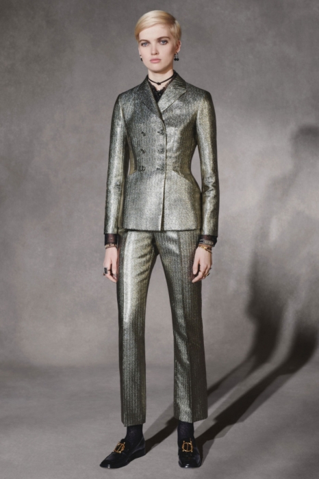 В мудборд pre-fall коллекции снова легли полотна художников: если весенне-летняя коллекция апеллировала к творчеству Вики Нобл, а осенне-зимняя обращалась к сюрреализму Ники де Сен-Фаль, то в этот раз Кьюри перелистывала архивы фотохудожницы Клод Каон. Ее автопортреты, в которых она представала в разных маскулинных луках, отразились на четких линиях и мужском покрое вещей. «Во времена Каон родился образ современной парижанки, — объясняет дизайнер. — Он очень близок к идее использования моды и платья как представления себя окружающему миру».