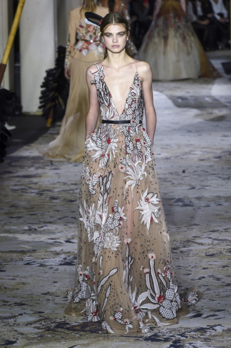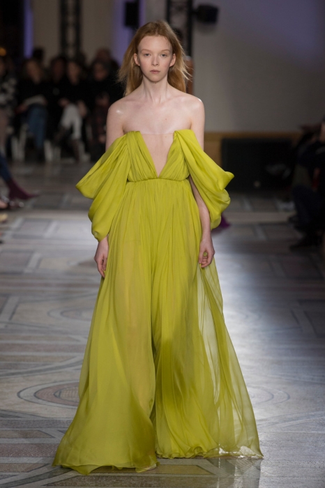 Первым на суд вип-гостей вышел Бертран Гийон, креативный директор марки Schiaparelli. Показ, устроенный в кулуарной французской квартире (совсем как во времена зарождения моды haute couture), начинался контрастными кардиганами и заканчивался вереницей голых нарядов. Их не способны вытеснить ни скромные платья «отличниц», ни черные костюмы движения против насилия: провокация вечна, равно как и «сердечные» силуэты Эльзы Скиапарелли, которые она скопировала с татуировок матросов в далеких 1920-х годах.