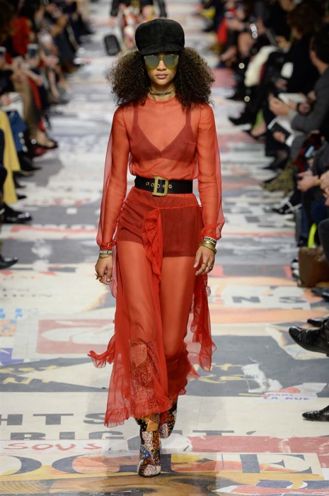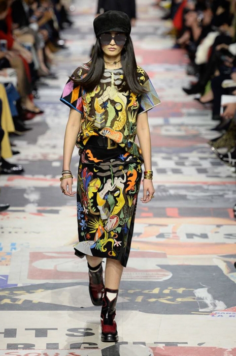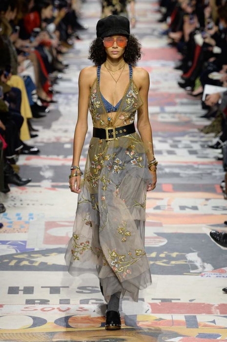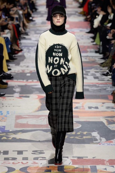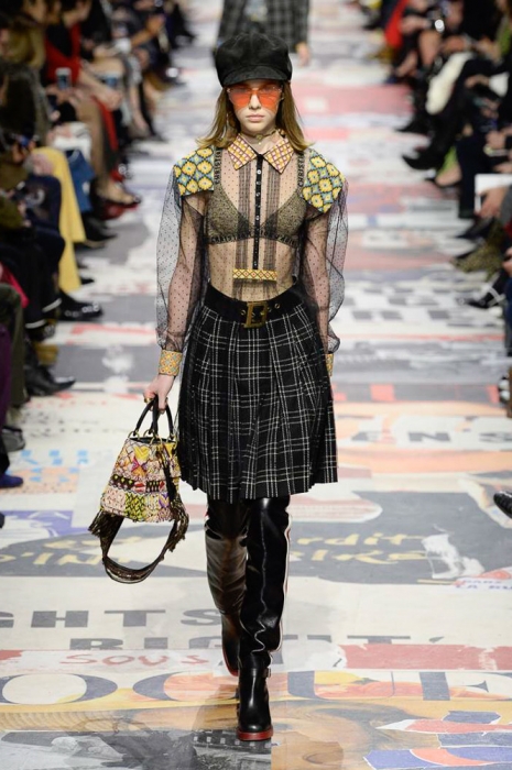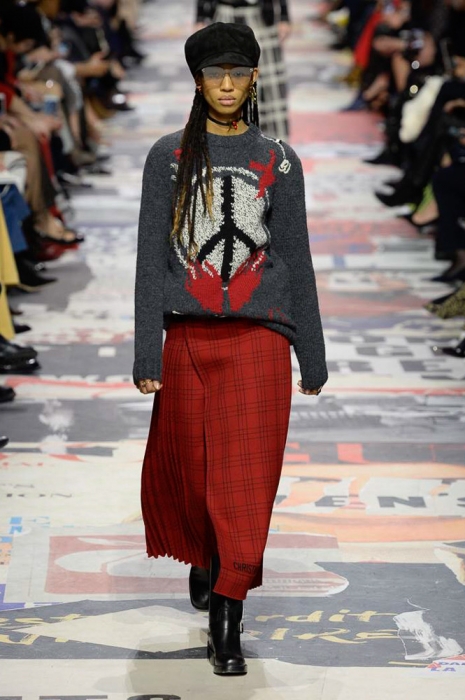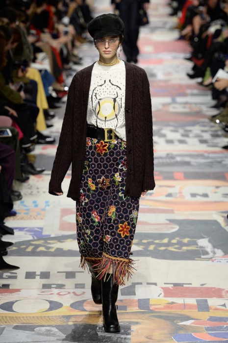 С каждым сезоном феминистское настроение в показах Dior становится все более прямолинейным. Если в весенне-летней коллекции бренда оно прослеживалось через отсылки к текстам о равноправии женщин-художниц, то в новой осенне-зимней об эмансипации говорили «в лоб». Стены музея Родена, где проходило шоу, были обклеены активистскими плакатами 1968 года и лозунгом из знаменитой речи Хиллари Клинтон «Women's rights are human rights», а финальное дефиле прошло под звуки солдатского марша.