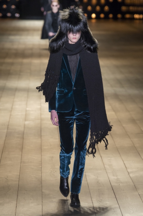 После фирменных полупрозрачных блуз, кожаных шорт и кружевных платьев с треугольным декольте, с которых Saint Laurent начинает свой показ еще со времен Тома Форда, на подиуме появились меховые (чисто сибирские!) унты, плотные бархатные костюмы, шарфы длиной до колен и черные плюшевые шубы. Но до конца референс осенне-зимнего шоу мы разгадали по шапке-ушанке: «Я был вдохновлен русской коллекцией мсье Сен-Лорана, но с большой ориентацией на парижскую моду», — рассказал Энтони за кулисами шоу.
