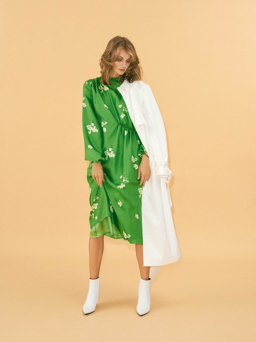 Весна пришла! — если не на улице, то в новой коллекции Юлии Матвиенко и Валентины Крупник. Девушки, которые сознательно отказываются называть себя дизайнерами, ловят морозное солнце и призывают тепло цветочно-конфетными луками и хулиганским стайлингом. Топы (как с карнавала в Рио-де-Жанейро!) замешаны с ярко-желтыми брюками, зеленый кафтан-пальто дополнен кружевным джемпером, а голубая блуза со шнуровкой комбинирована с юбкой, напоминающей «отрезанную» часть тренчкота.