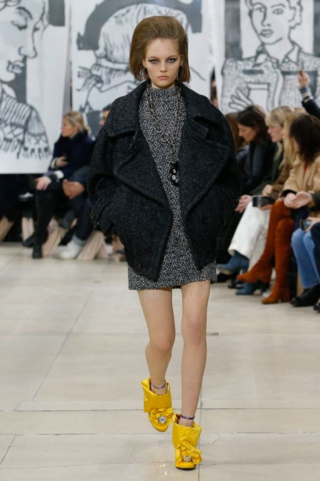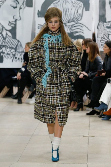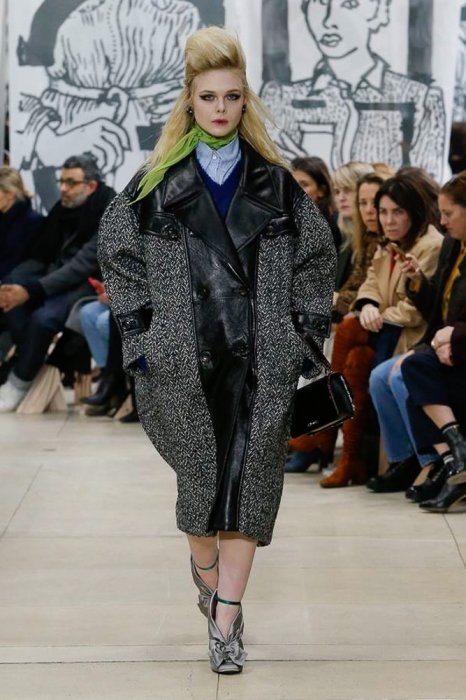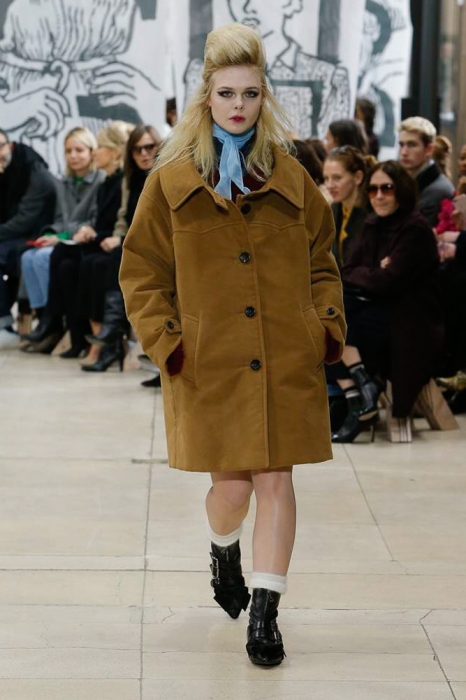Бренд Miu Miu уже давно работает с молодыми актрисами: в его кампейнах снимались старлетки Мия Гот, Стейси Мартин, Хейли Гейтс, Мэддисон Браун и сестры Фанниг. Младшая из них, 19-летняя Эль, сегодня открыла показ осенне-зимней коллекции марки, примерив роль модели вместе с коричневым пальто свободного кроя, лакированными полусапожками и шелковым голубым шарфом.