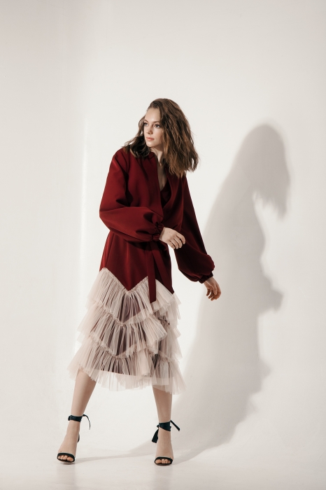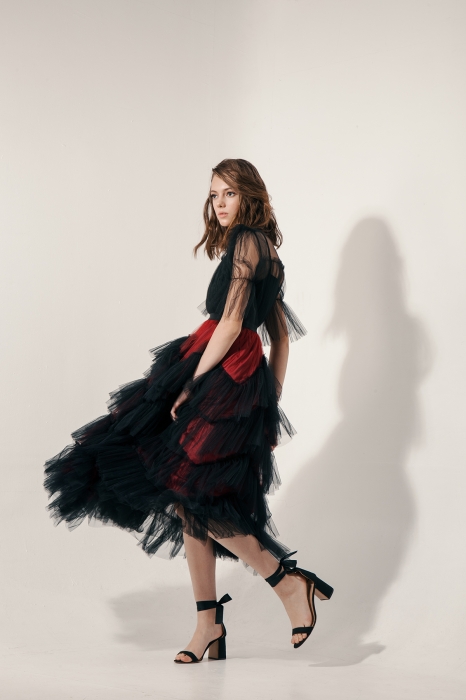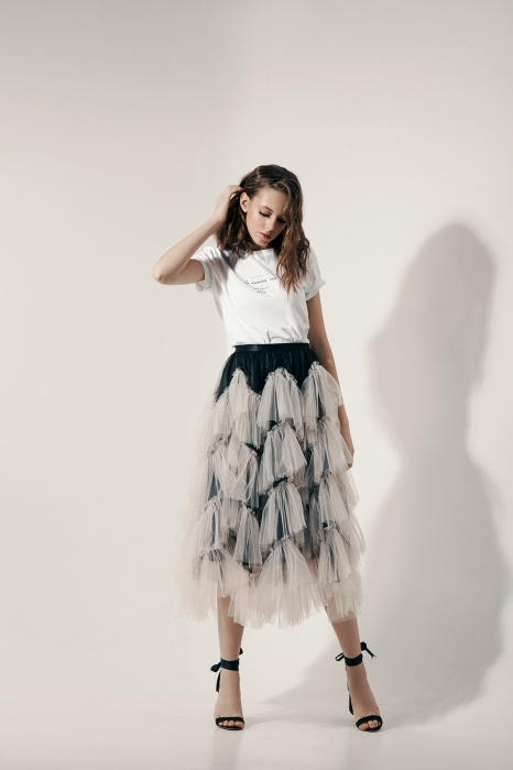 В анонсирующем лукбуке — костюмы «конфетного» цвета, плиссированные жакеты, тренчкоты из экокожи, брендированные футболки и новая интерпретация визитной карточки марки — воздушных платьев из многослойного тюля. Дизайнер Александра Бурд показывает, что их можно носить с любыми вещами и в любую погоду: в апреле — с плащами и кожаными ботинками, в июне — с бомберами и невесомыми босоножками. Все они поступят в продажу через неделю — в онлайн-магазине So Number One и шоу-руме на Большой Конюшенной, 9.