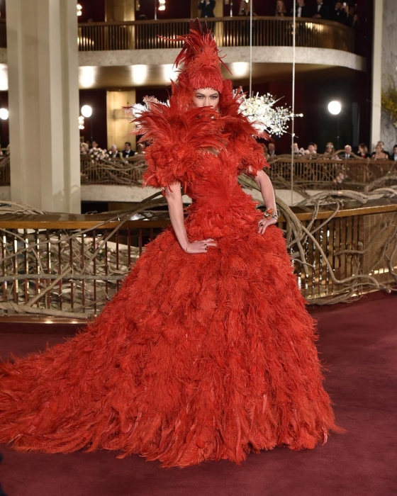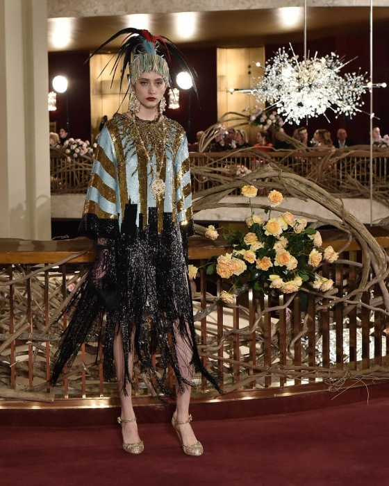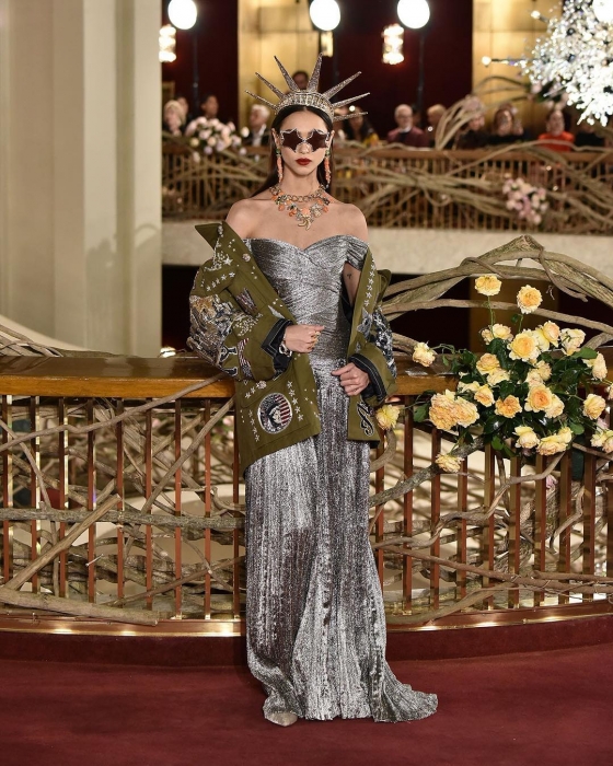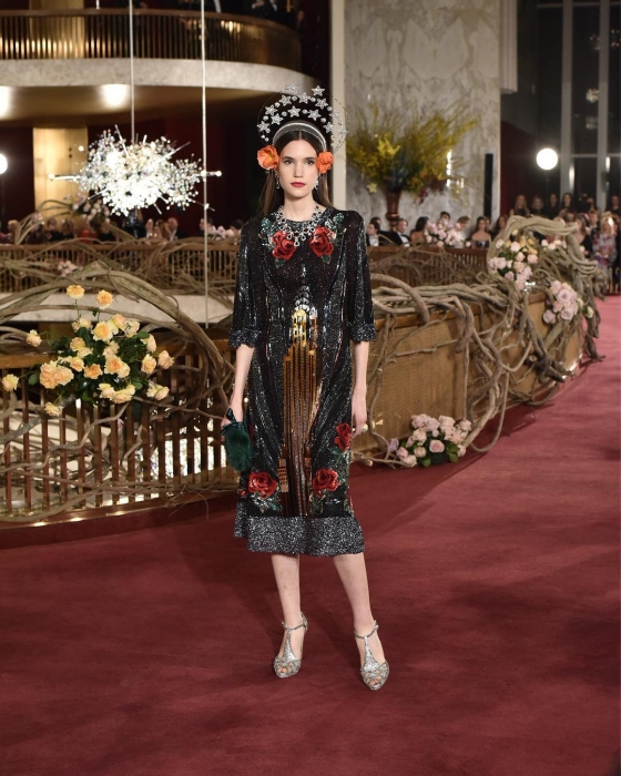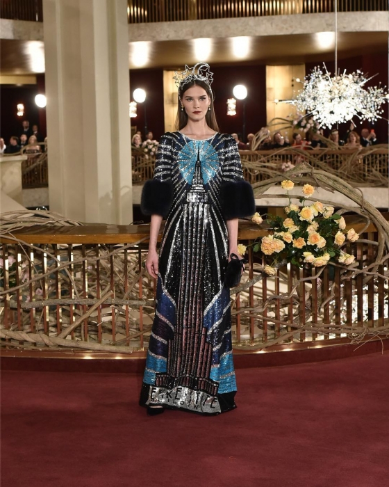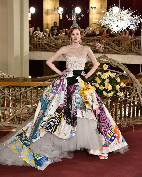 Костюмы с видом ночного Нью-Йорка, платья со шпилем Эмпайр-стейт-билдинг, юбки с фасадом Метрополитен-оперы и наряды с вечеринки Великого Гэтсби — на подуиме-красной дорожке их показывали Карли Клосс, Тейлор Хилл, и модели из Петербурга Вика и Юля Павловы. В подборе звезд кутюрного показа дизайнеры не отошли от своей ключевой концепции — «наши платья подходят всем»: под музыку Лайзы Миннелли дефилировали также девушки размера плюс-сайз (в том числе Эшли Грэхем), несколько «олдушек» и клиентки модного дома.