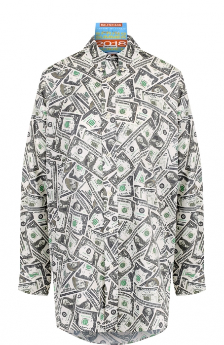 Мы храним валюту в одежде, причем в прямом смысле этого слова: в весенне-летней коллекции Balenciaga появились рубашки «состоятельной женщины» — с принтом в виде американских и европейских банкнот. Сделаны они, естественно, не из бумаги, а из шелка и хлопка и уже продаются в ДЛТ по ценам от 87 550 (за евро) и 89 950 (за доллар) рублей.