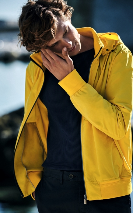 Итальянские мастера мужской одежды из марки Canali задумали сезон для тех, кому не сидится на месте. Они смягчили крой деловых костюмов, придумали немнущиеся тренчи и ветровки, а также новый вид ткани из ультратонкой шерсти. Теперь пиджакам и брюкам не страшны ни складки, ни брызги, ни перепады погоды: с эластичной поверхности с пропиткой капли скатываются сами собой. Но главное — это роскошные цвета: васильковые пальто, оливковые джемперы из кашемира и желтые куртки необходимо сочетать друг с другом! (Canali)