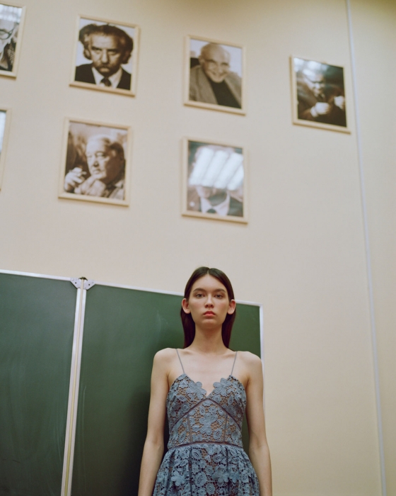 Бутик Babochka выпустил лукбук с образами для выпускного — изумрудным кружевным платьем Erdem, жилетом на бретелях Maison Margiela, инфантильным мини Calvin Klein 205W39NYC и блестящим нарядом из нулевых Walk of Shame. Кадры снимали не на типичном для таких каталогов однотонном фоне, а в антураже коридоров, аудиторий, актового и спортивного залов РГПУ им. А.И. Герцена. Так фотограф Алексей Григорьев и стилист Роман Кянджалиев хотели показать, как выпускные платья будут смотреться в реальной обстановке с советским ремонтом, который сохранился в большинстве государственных вузов и школ.