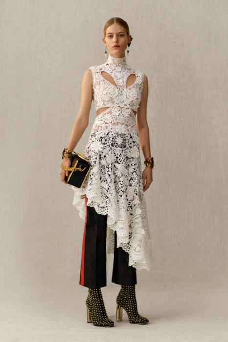 Недавно мы рассказывали, как нужно носить БДСМ-одежду и не выглядеть пошло, но после презентации коллекции pre-fall Alexander McQueen поняли, что никто не даст мастер-класс лучше бренда. Фетиш-элементы вроде кожаных ботфортов, поясов с клепками и абсолютно прозрачных платьев переплетены с военной и викторианской стилисткой. Они отражены в рюшах (похожих на морскую пену), строгом архитектурном покрое, крупных вместительных карманах и иногда нежных пастельных тонах — все снова говорит о феминизме, который заканчивается, когда девушка идет на свидание с отличным парнем.