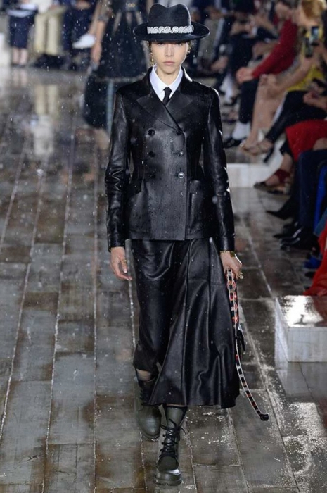 Жокейские костюмы, тренчкоты цвета хаки, офисные рубашки и кожаные пиджаки проверку катаклизмами прошли на сто процентов. Однако помимо практичности и функциональности, они имели важный референс: Мария Грация Кьюри посвятила коллекцию так называемым эскарамуза — мексиканским женщинам-наездницам. «Почему мне нравятся эскарамуза? Они занимаются очень мужским делом — родео. Но делают это в традиционных, очень женственных и красивых платьях», — рассказывала дизайнер в интервью изданию WWD.