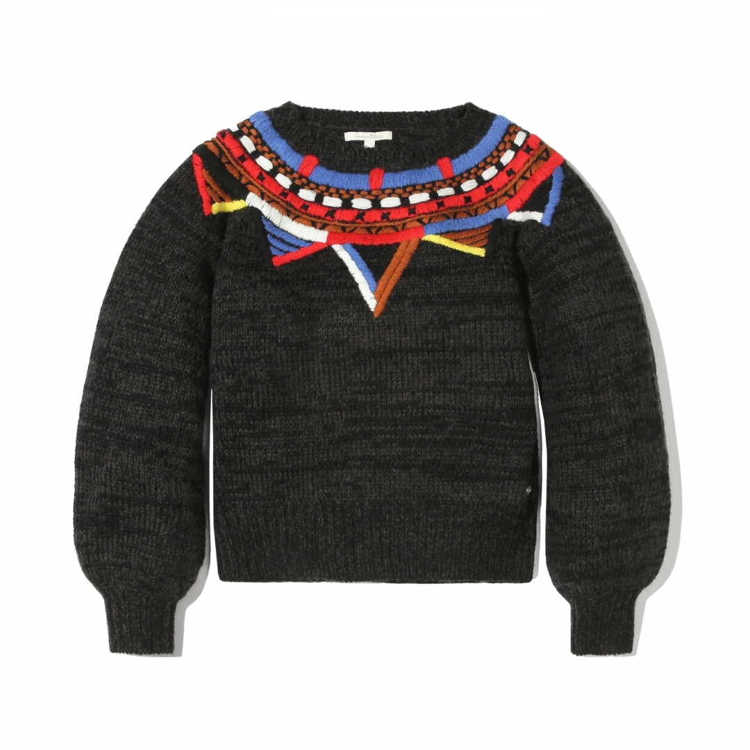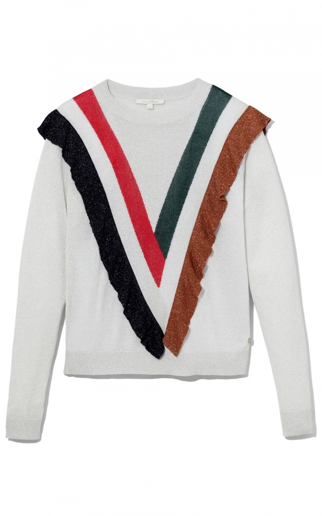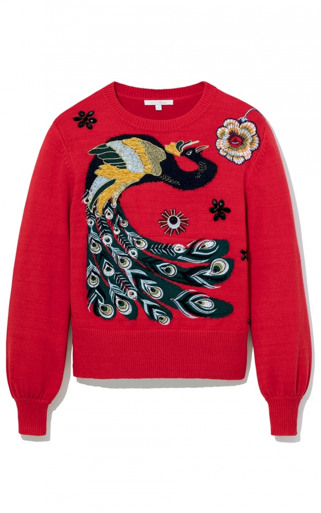 Джемперы с блестящими рюшами, крупной вязкой и павлинами с персидского ковра отсылают к советским каталогам и стилю вашей бабушки в юности. Так задумано — при грамотном стайлинге (например, черной фуражкой и тяжелыми сапогами на шнуровке) ретро-покупка будет выглядеть очень прогрессивно.