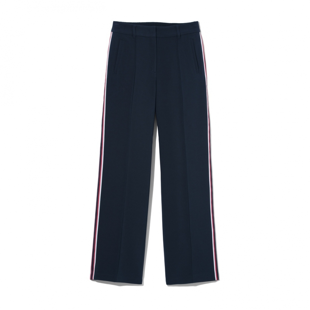 Чтобы уйти из магазина Tom Tailor с сформированным тотал-луком, бренд предлагает к футболкам идеальные джинсы — скинни, клеш, «mom» или «бойфренды». А еще хлопковые и шерстяные брюки, дополненные лампасами и кулисками.
