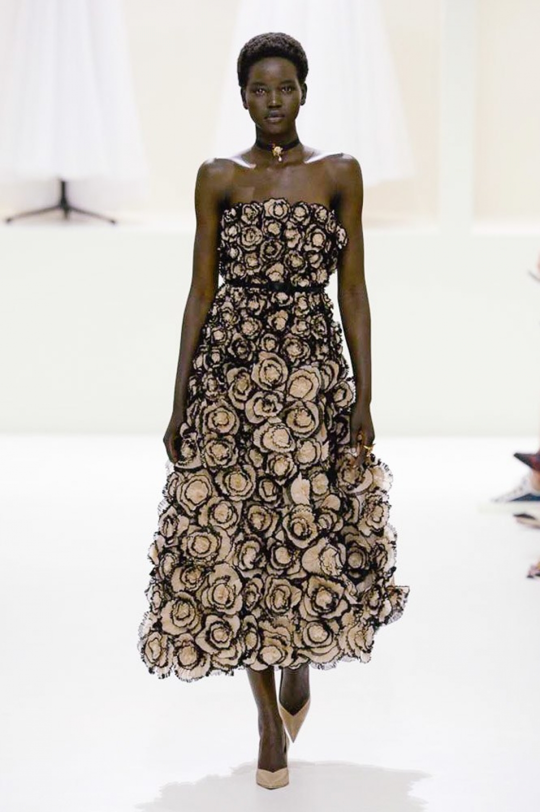 В Музее Родена прошел показ кутюрной коллекции Dior, сет-дизайном которого послужила стена из 294 манекенов. Часть из них была одета в такие же наряды, как на подиуме, но только окрашенные целиком в белый цвет — чем-то напоминало экипировку мастериц ателье, которые работают в чистой однотонной одежде.