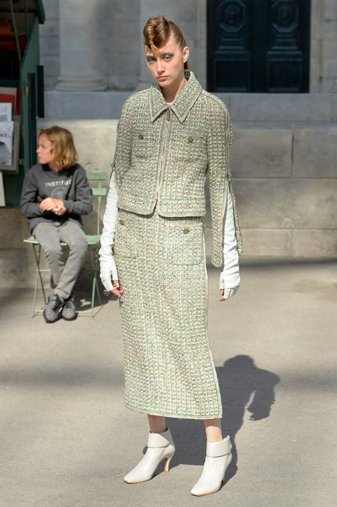 В Париже прошел проказ Chanel, который редакторы, инфлюэнсеры и покупатели ждут едва ли не больше шоу других марок. Дело тут не столько в вещах, сколько в сет-дизайне: что же на этот раз придумает, воссоздаст, возведет Карл Лагерфельд? После супермаркета, ракеты, Эйфелевой башни, лайнера в натуральную величину и настоящего водопада (водопада, Карл!) в Гран-Пале уместили Монмартр. Причем со всеми сопутствующими элементами — от базилики Сакре-Кер до торговых лавочек с книгами и портретами Габриэль Шанель.