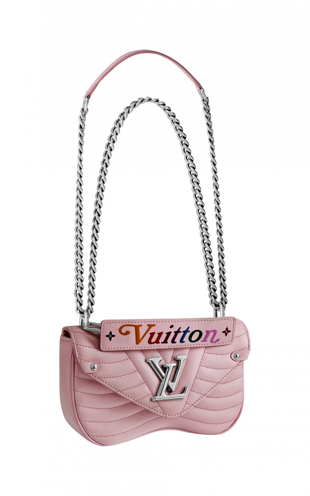 Розовая сумка Louis Vuitton с разноцветным логотипом только прикидывается кавайной — и футуристичная форма, и брутальные металлические цепи выдают в ней крутой характер. (Louis Vuitton)