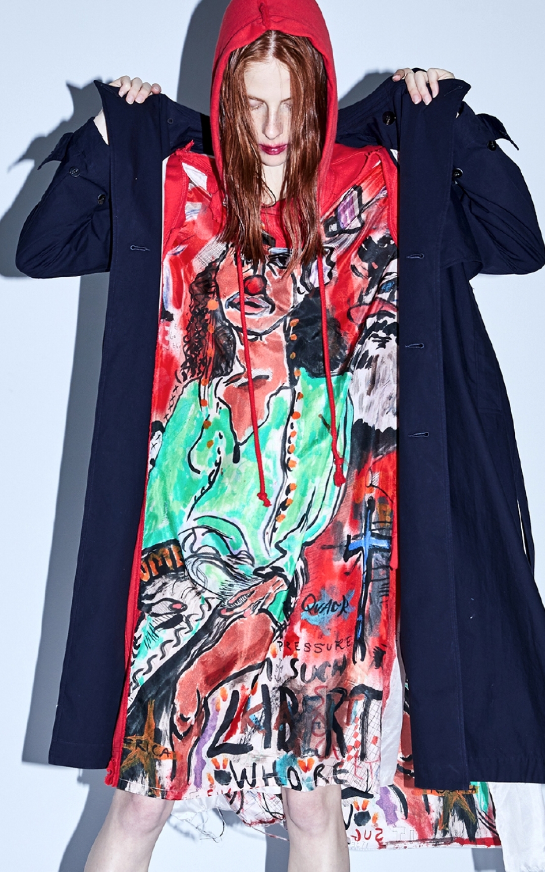 Летняя коллекция китайского бренда JNBY посвящена эссе Вирджинии Вулф «Обычный читатель», в котором писательница исследует тайнопись души. Отсюда яркие принты а-ля Баския, которые нам особенно отзываются: кресты, провокационные лозунги, странные персонажи. (JNBY)
