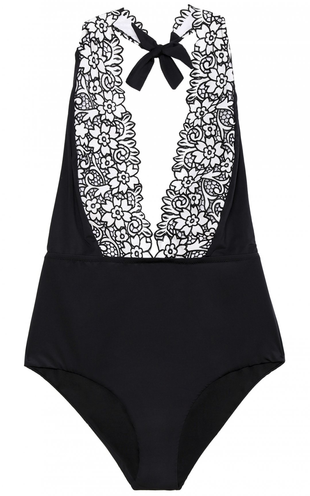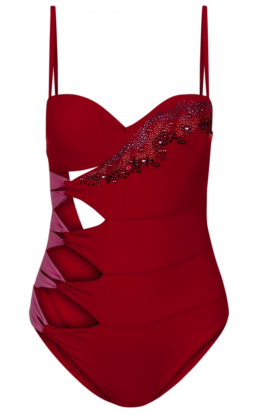 Идеальный силуэт, графичные вырезы и мерцающая вышивка бисером превращает просто купальник в предмет тяжелого люкса. Хорошо, что на курортах есть вечеринки! (La Perla)