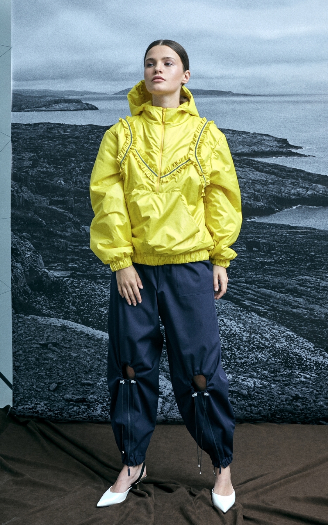 В летней линии Muus дизайнер Лена Максимова собрала нордические цвета: оттенки купальницы, скал, мха и фьордов превратились в гибриды спортивной одежды и вечернего платья. Викторианские воротнички и брюки-парашюты? Конечно, да! (lenamaksimova.com)