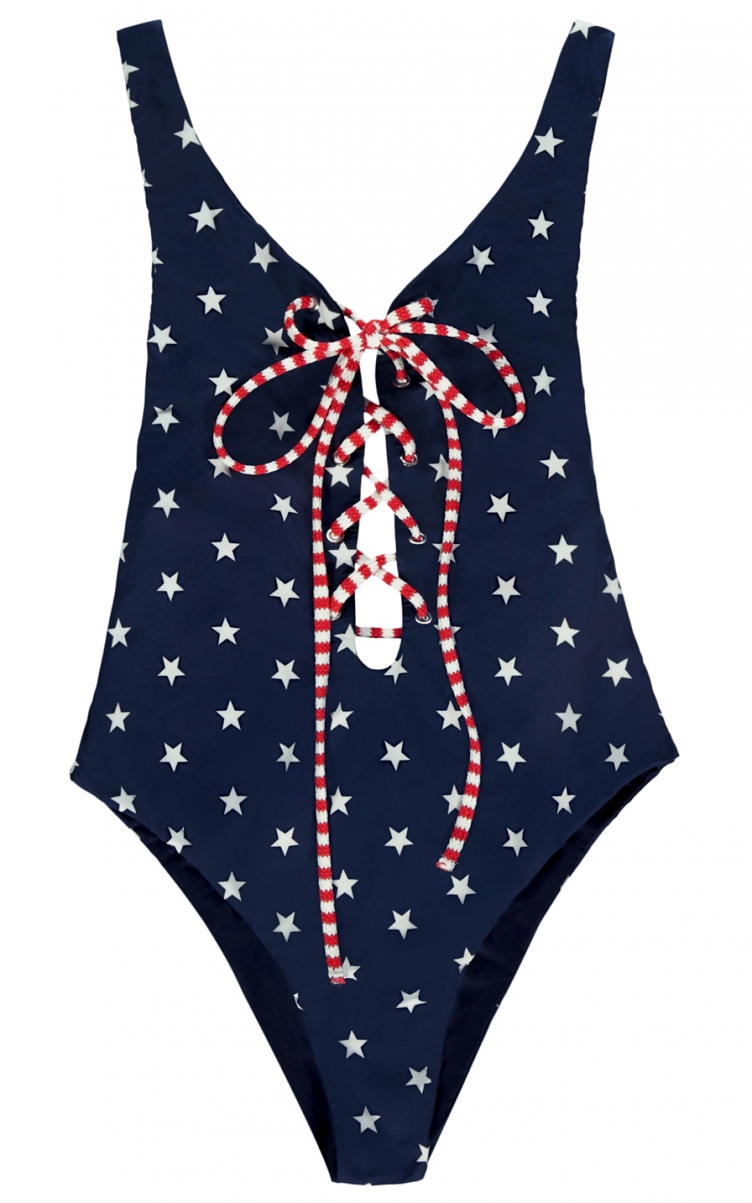 Коллекция купальников Тezenis отправляет в кругосветку без виз: рюши и кружева переносят в Севилью, пальмовые листья — на Гавайи, деликатные хризантемы — в Японию, но мы особенно рады звездно-полосатой модели как будто прямиком из клипов Ланы Дель Рей про непростую жизнь на побережье Калифорнии. (ТРЦ «Галерея»)