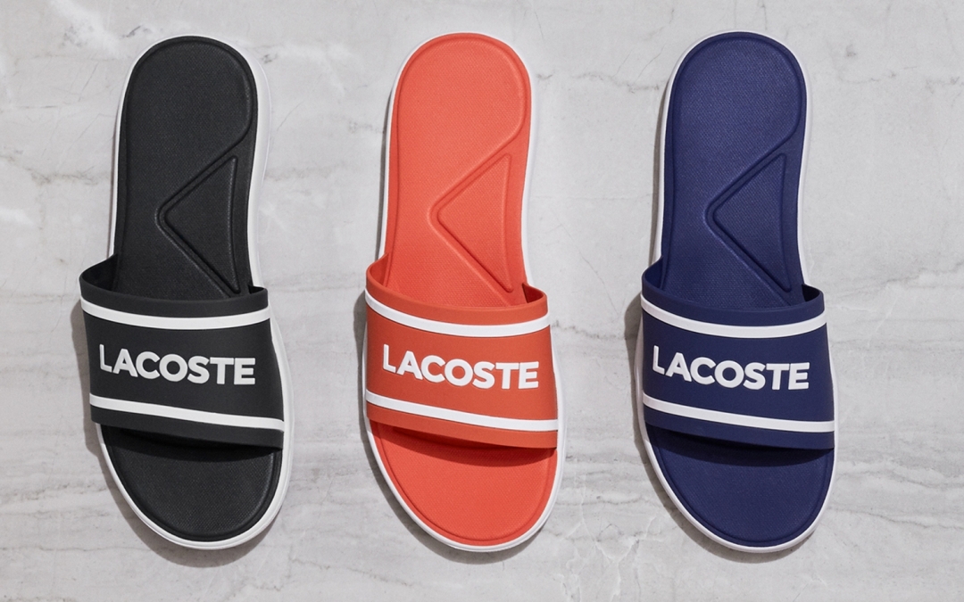 Полная реабилитация имиджа резиновых сланцев: в Lacoste придумали модель L.30 Slide, верх которой цитирует теннисные козырьки с обязательным заметным логотипом, а низ — «умная» амортизирующая подошва Eva. Лимонный, оранжевый, ультрамариновый цвета — ничего лучше для вальяжной прогулки от корта до бассейна точно не найти. (ТК «Невский центр»)