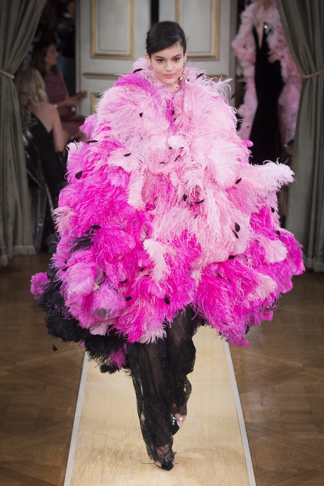 Кстати, перья, число которых в одном платье доходило до 10 000, стали главным элементом стайлинга коллекций. Причем если на церемонии вручения «Оскара» и Каннском кинофестивале они имели один-единственный референс — 1920-е и джазовые вечеринки, то теперь отсылают к стае розовых фламинго. Посмотрите на работы Valentino и Fendi, а Armani Prive и вовсе сделали из птиц гигантскую шубу!