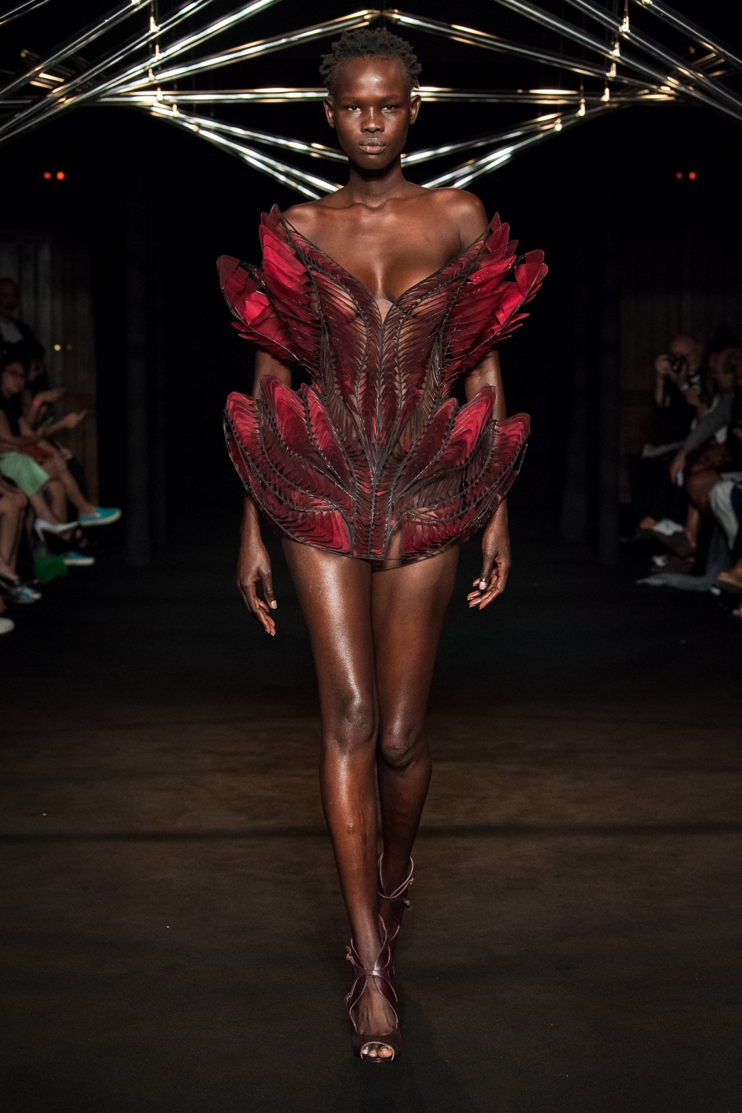 И это не единственное, из-за чего мы будем помнить прошедшую Неделю моды: ливанский дизайнер Зухаир Мурад передал привет Петербургу и его балам, Пьерпаоло Пиччоли вспомнил фотографии Деборы Турбевилль и персонажа Дэвида Боуи Зигги Стардаста, Ирис ван Херпен показала прогресс 3D-принтера, Джон Гальяно высмеял виртуальную реальность, а Джамбаттиста Валли предложил носить платья из меха на голое тело. Все же осенне-зимний кутюр намного более свободный, чем весенне-летний: дизайнерам не нужно думать о череде красных дорожек и коммерциализации коллекций — они позволяют себе дурачиться, перелистывать архивы и добавлять странные элементы. В этот раз — треугольные, коррозийные и металлизированные головные уборы.