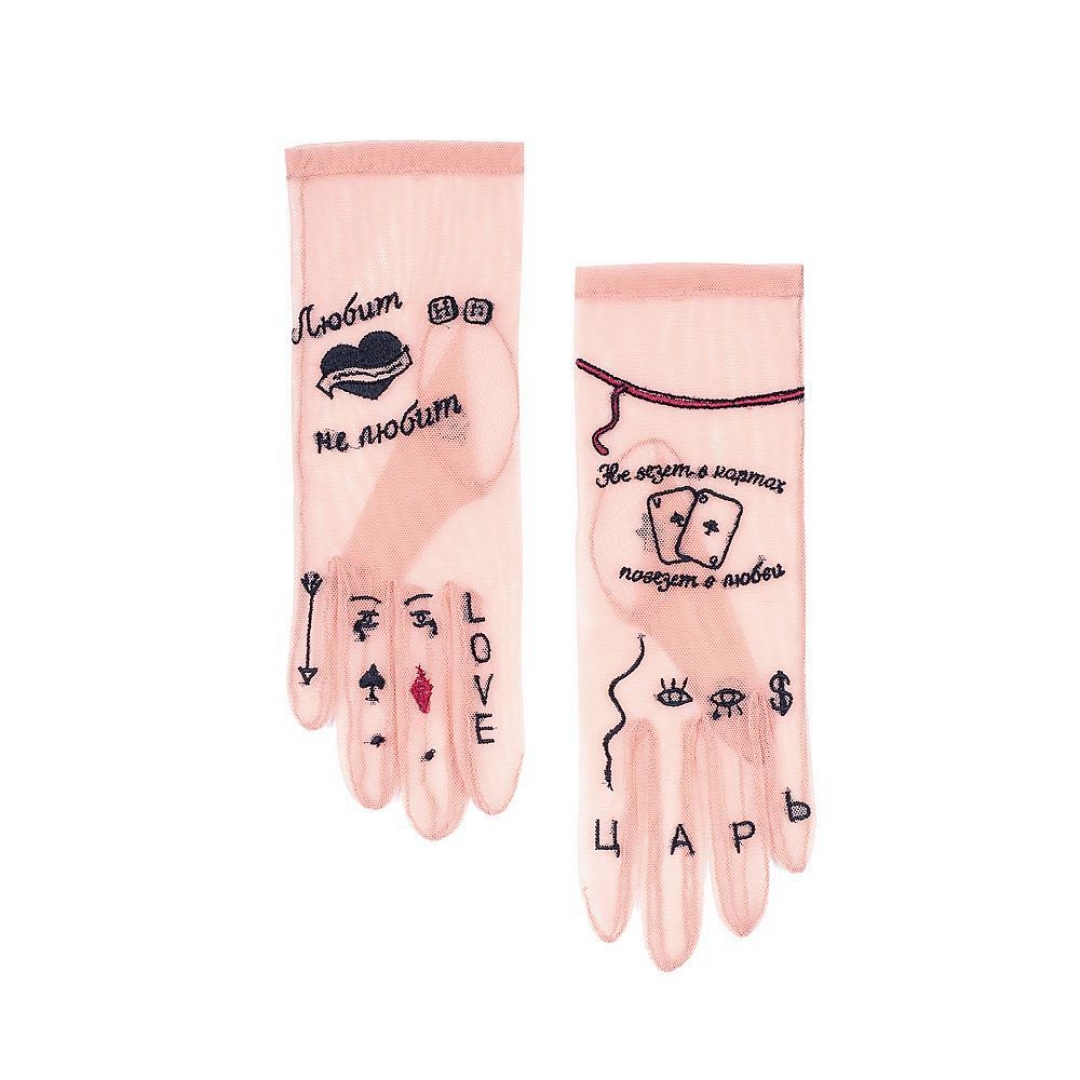 Если вы думаете, что мода развивается только в направлении Европы или Закавказья, то ошибаетесь. В Украине тоже делают классные костюмы и платья, а еще детально прорабатывают образы — только посмотрите на эти перчатки Tender & Dangerous! Две подруги — Кристина Гончаренко и Катя Голденштейн — решили компенсировать отсутствие татуировок созданием аксессуаров с ними. Перчатки из тончайшей сетки украшены портретами персонажей «Леона», Юрия Гагарина и Владимира Маяковского, а еще надписями «Королева дискотек», «Любит/не любит», «Не болтай» и «Хулиганов к ответу».