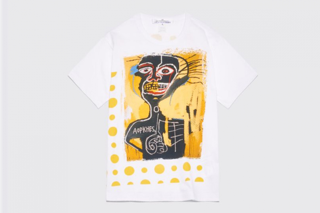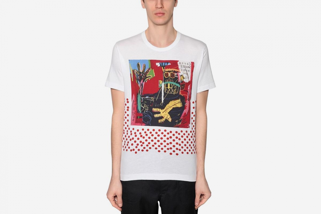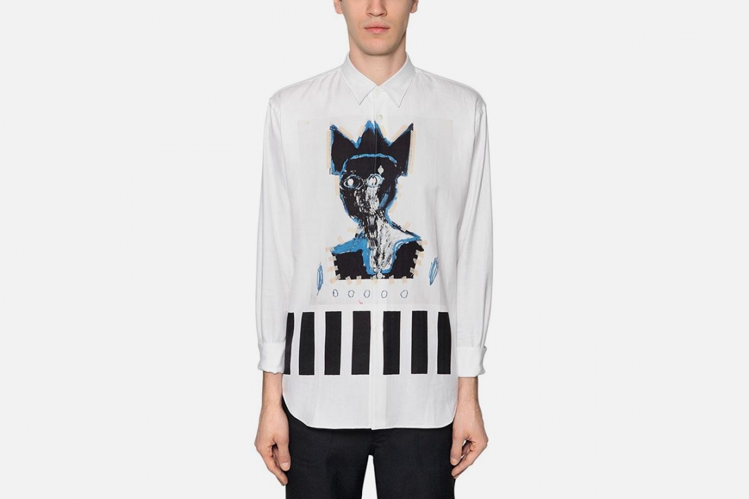 Мы нашли, в чем ехать на выставку Жан-Мишеля Баскии в Париже: Comme des Garçons выпустил рубашки и футболки с работами неоэкспрессиониста. Бренд впервые показал их на мужском шоу в январе этого года, а теперь арт-одежду можно купить — на сайте tres-bien.com она продается по ценам от 129 до 580 долларов.