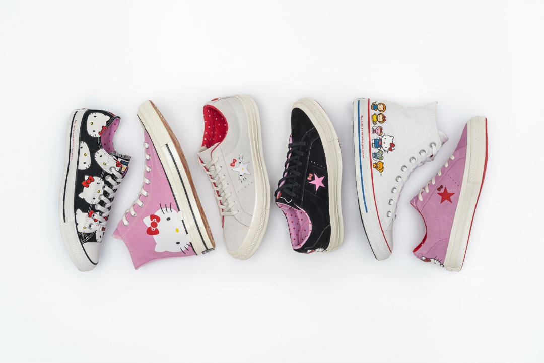 Японская компания Sanrio, выпускающая каваий-товары с мультяшными персонажами, сделала коллаборацию с Converse: теперь на культовых кедах Chuck Taylor All Star, Chuck 70 и One Star красуется не менее культовая кошка Hello Kitty. Кроме ее мордочки и бантика, на обуви есть надпись «Say hello to me when you see me» («Скажи “Привет”, когда встретишь меня»), а также изображения других героев из вселенной Sanrio.
