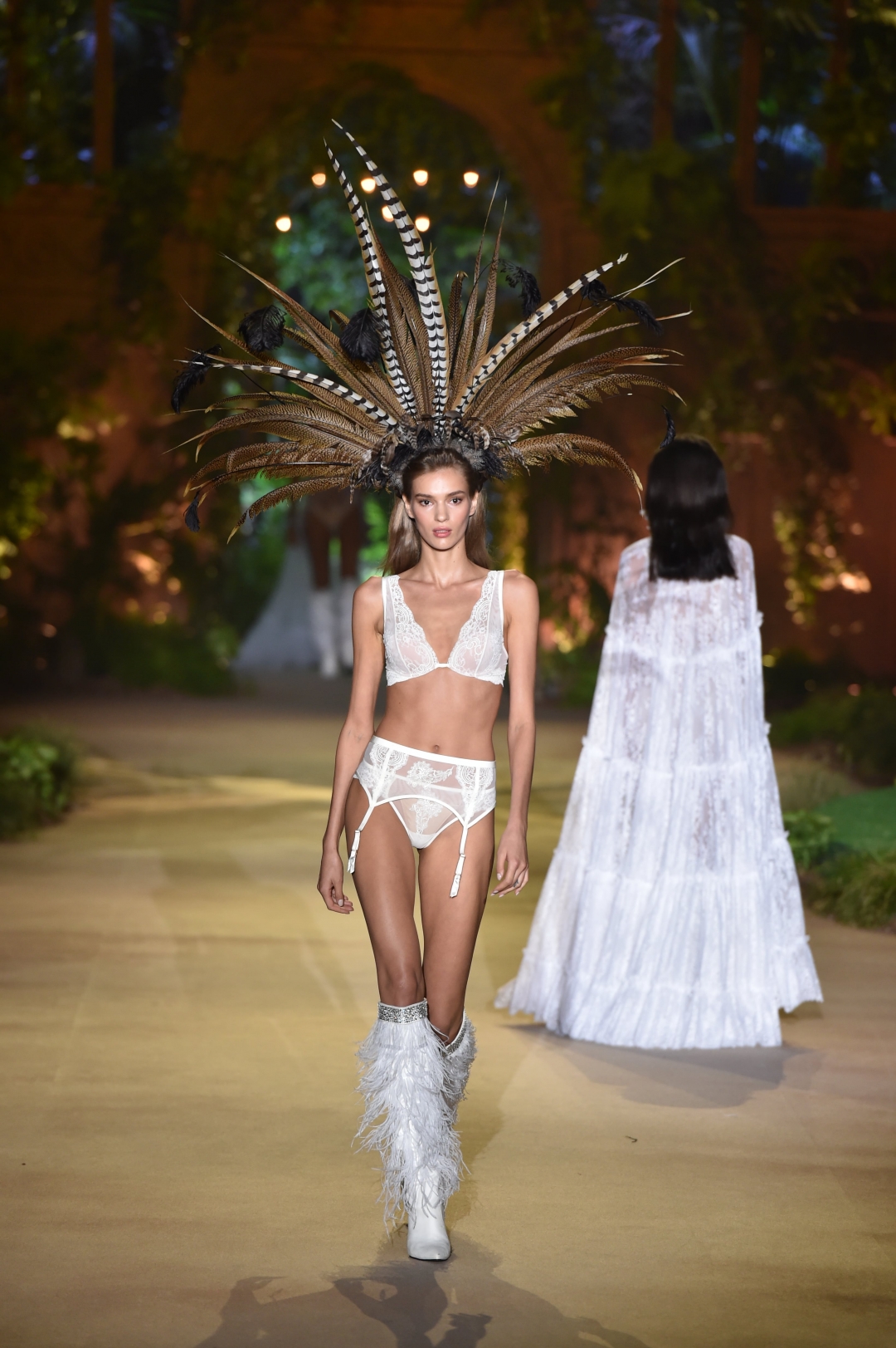 Показ, как и вся новая коллекция, был поделен на три части. Первая — оммаж стилю, характеру и работам мексиканской художницы Фриды Кало: на кружевных комплектах, шелковых комбинациях, белоснежных халатах и монохромных бра распустились васильки, розы, ирисы и бутоны агератума. Вторая — подтверждение главного тренда сезона — «дикий вест»: на корсетированные бюстгальтеры, балконеты, топы, стринги и шорты нанесена символика родео (звезды, узоры пейсли и красные розы). О том, что это все-таки осенняя коллекция, говорит третья часть шоу — с теплыми кардиганами, которые можно носить дома и на прогулке, и халаты, которые служат накидкой в первые (еще теплые) дни сентября. Причем сделаны они не только для девушек, но и для парней, которые также прошлись по подиуму Intimissimi в Вероне.