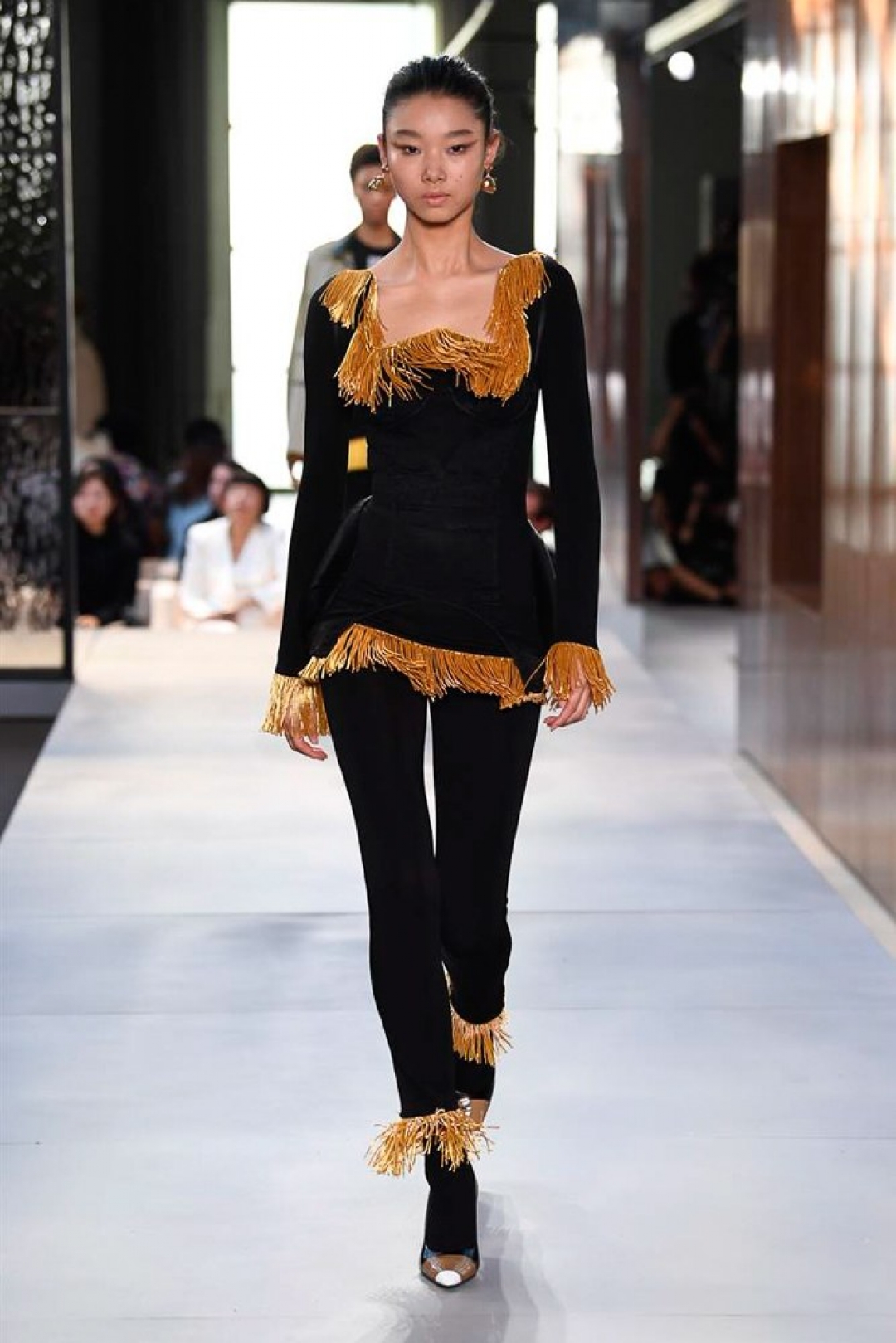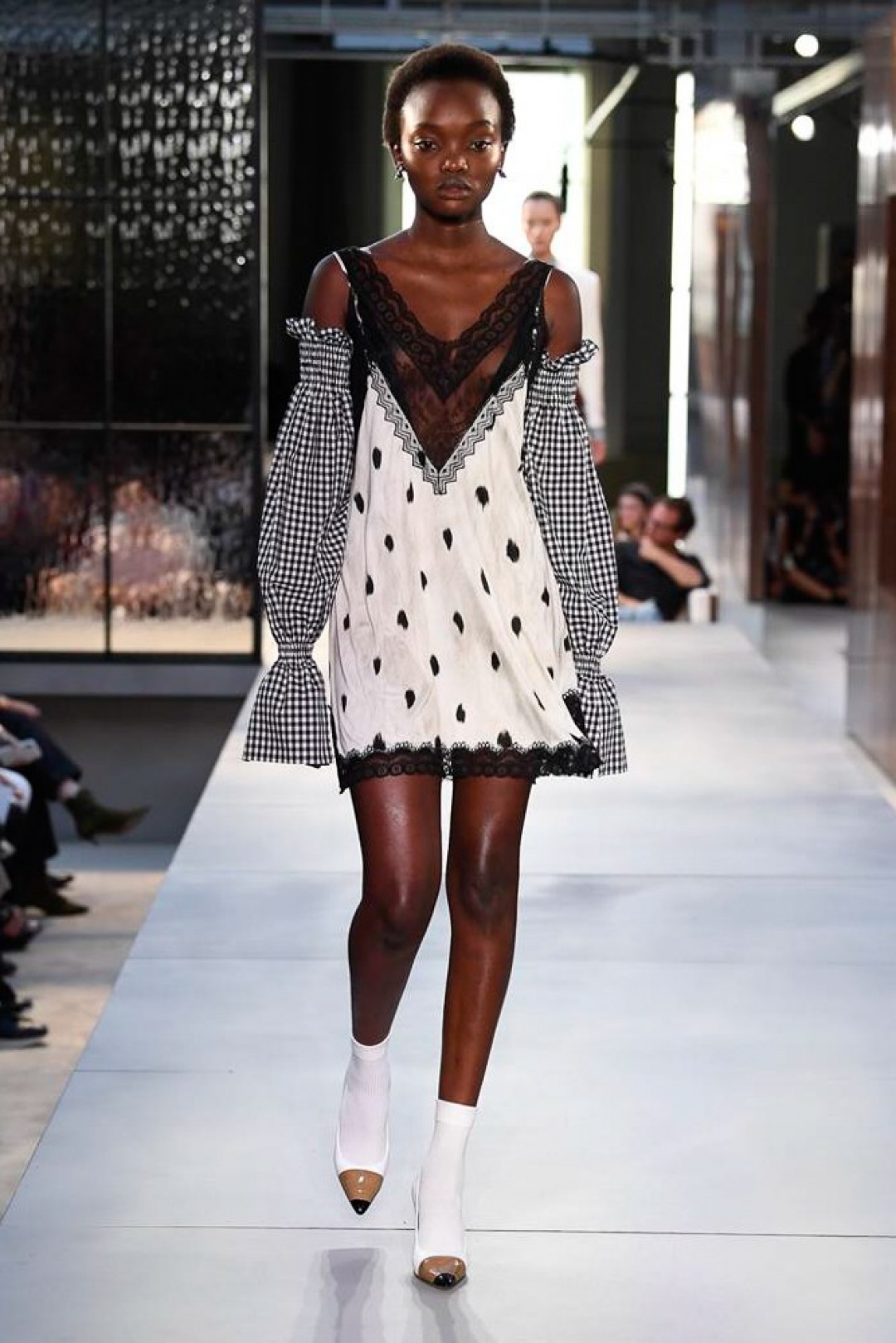 В ней Рикардо уважил всех: любительниц минимализма — костюмами-тройками естественных оттенков, фанатов британской классики — плащами всех форм и конструкций, авангардисток — юбками с фотопротретами, хайпбистов — сандалиями, которые круче кроссовок, а сторонниц PETA — пятнистыми рубашками с надписью «За что они убили олененка Бэмби?». При этом Тиши не изменил ни ДНК бренда (тренчи появлялись практически в каждом выходе, а фирменная расцветка раскрасила не только клетчатые рубашки, но и полосатые блузки), ни самому себе. Его любимые платья-ночнушки наделены аристократичными рукавами на английский манер, а архитектурные жакеты и длинные черные наряды вышли под занавес шоу, намекая на появление на грядущем «Эмми».